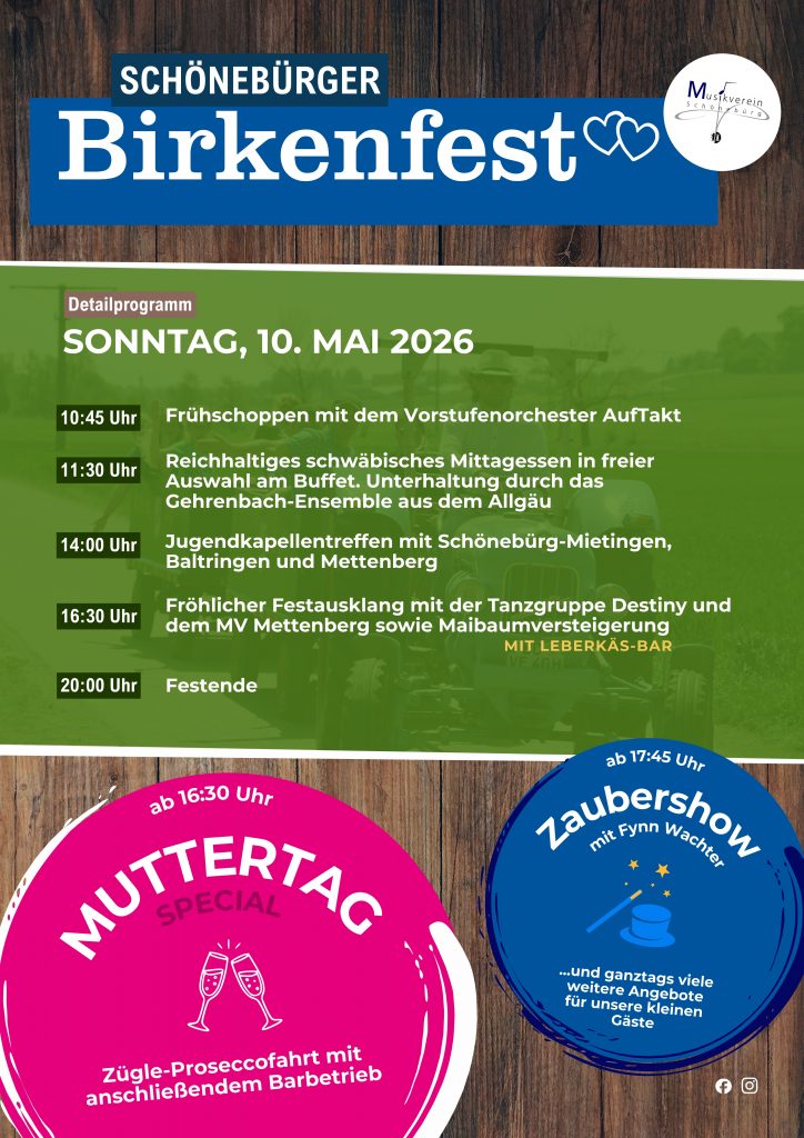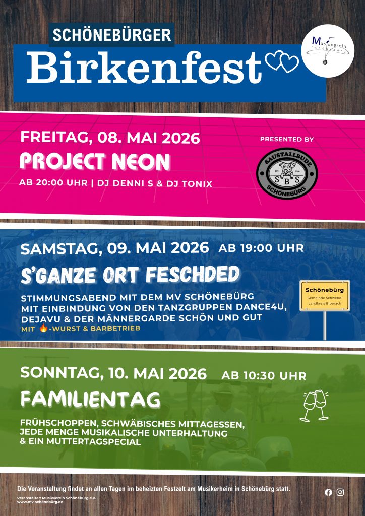 Freue dich auf drei unvergessliche Tage voller Musik, Spaß und Genuss! Das traditionelle Birkenfest bietet dir: beste musikalische Unterhaltung vom Feinsten und kulinarische Köstlichkeiten in gewohnter Qualität. Unterhaltung pur für Jung und Alt. Komme vorbei, feiere mit und erlebe ein Fest, das begeistert. Wir freuen uns auf dich!
